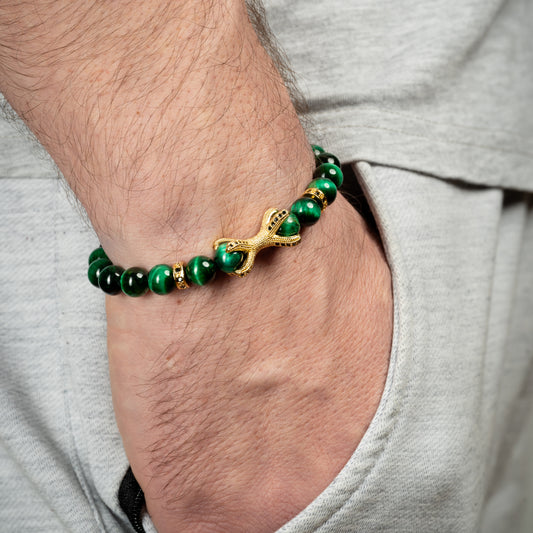 Cross Sphere Tiger Eye CZ Bracelet Set