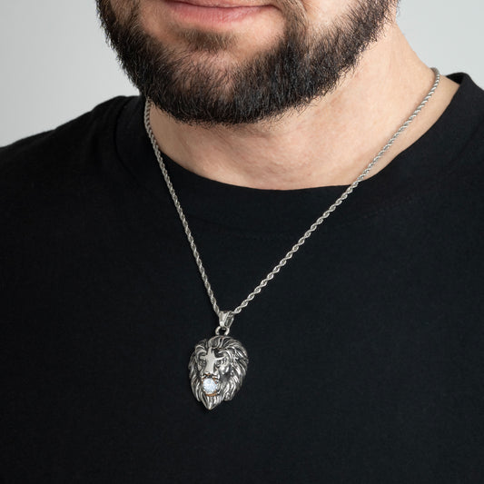 Lion Head Crystal Silver Pendant