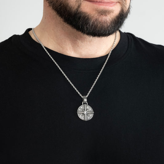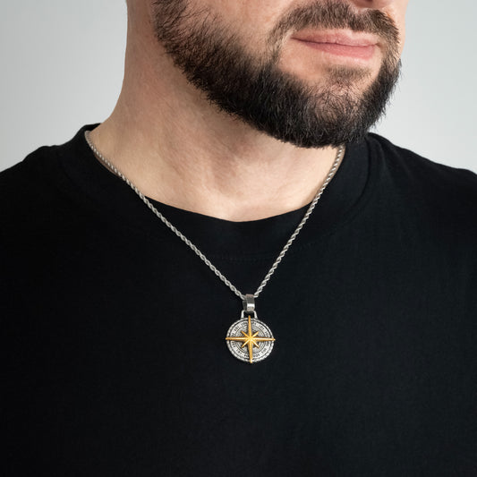 Compass North Star Silver Pendant