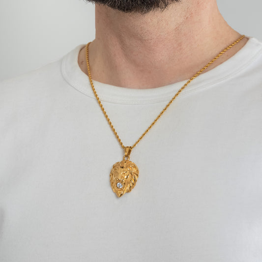 Lion Head Crystal Gold Pendant