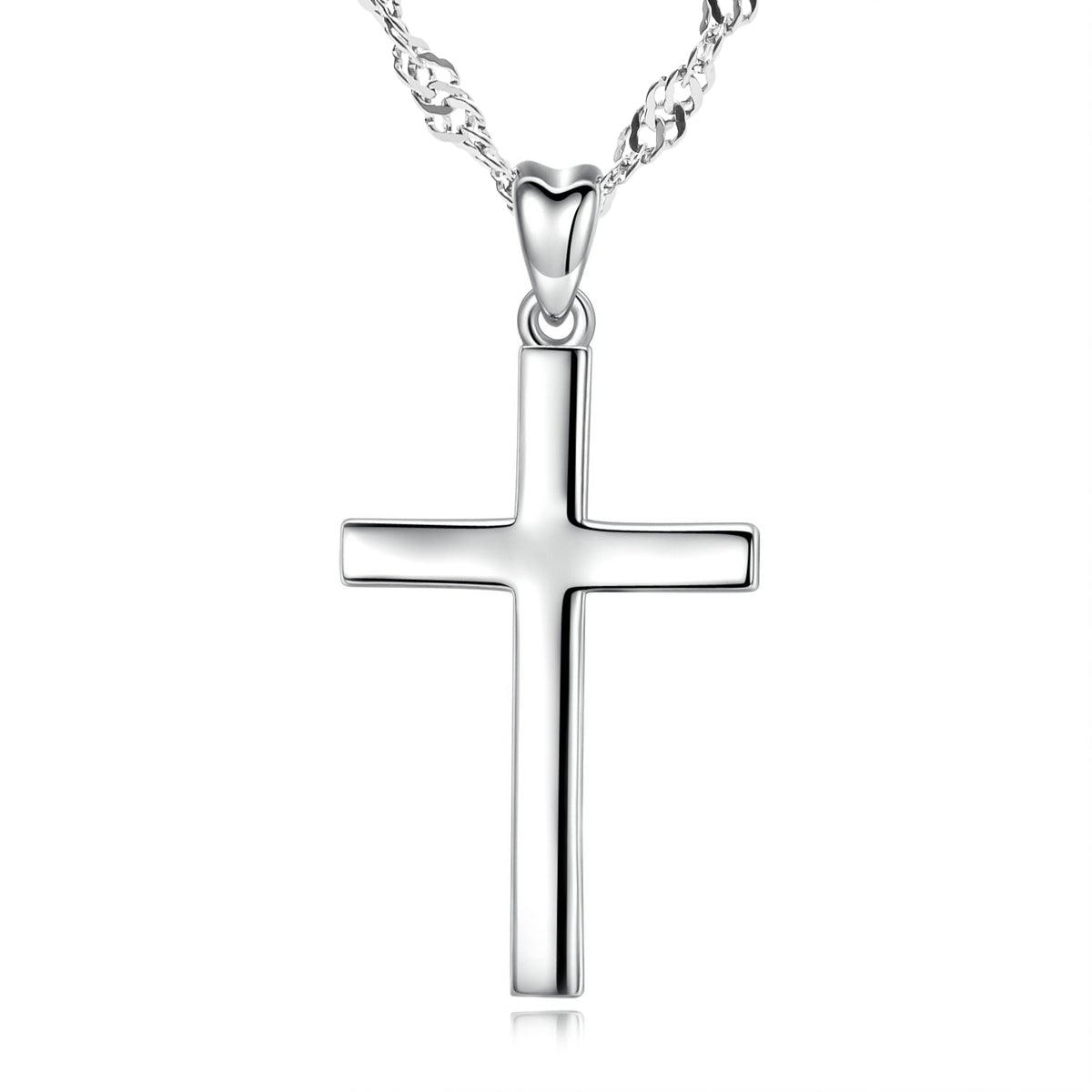 | Elegantly crafted from 925 Sterling Silver and lavishly plated with rhodium, this exquisite cross pendant is a timeless addition to any jewellery collection. A perfect blend of classic style and modern elegance, it is sure to make an impression wherever you go. |