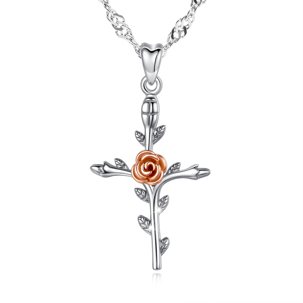 This stunning Rose Cross Pendant is crafted from 925 Sterling Silver with Rhodium and rose gold plating will bring an elegant, timeless touch to your outfit. Whether you’re seeking a classic aesthetic or something more contemporary, this piece will make a lasting impression. Its intricate detailing and polished finish make it a statement-maker. Offering up a stylish way to showcase your faith, the pendant promises to be an unforgettable addition to any jewellery collection. |